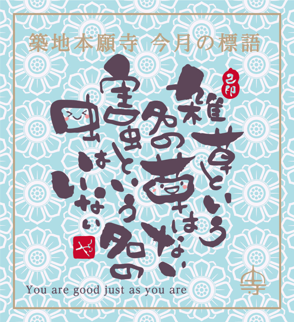 私たちは普段、草花や虫を何気なく「雑草」や「害虫」と呼んでいますが、これは人間の都合によるものです。草や虫に限らず、私たちは自分の都合や価値観で全てを分別して生きています。阿弥陀様は、分別することなく全ての命を平等に見ておられる仏様です。自分中心で考えがちな私たちですが、阿弥陀様のような見方をしていきたいものです。