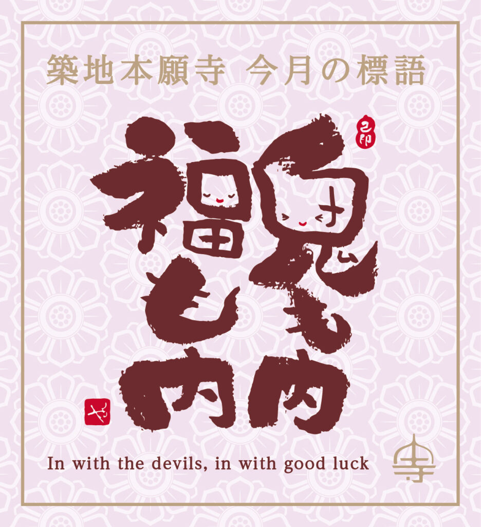 毎年2月3日は節分の日ですが、皆さまはどのように言って豆をまきますか?私たちはついつい鬼は外に行ってもらい、福は内に来てほしい」と思ってしまいます。しかし、仏さまは「苦しみを代わりに受けて、他に安らぎ与える」と仰っています。また仏教では全ての「いのち」は繋がっていると説かれます。この参拝記念カードの言葉をご縁に、私たちは「鬼も福も」受け入れられる気持ちを育んでいきたいですね。